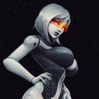 futuristic design and is wearing a black bodysuit. The character appears to be inspired by