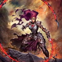 red aura or circle that suggests action or power. This style of artwork is commonly associated with illustrations from role-playing games, comics, or