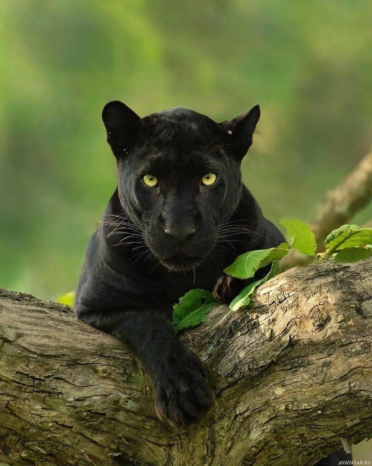 На данной картинке изображена черная пантера, покоящаяся на ветке дерева. Животное имеет отличительные отметины и показывает глаза открытыми сфокусированным взглядом. Похоже, что он находится в естественной обстановке, вероятно, в дикой природе, где его можно найти.