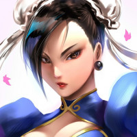 The image depicts a character that appears to be Chun-Li, a well-known female fighter from the "Street Fighter" series of