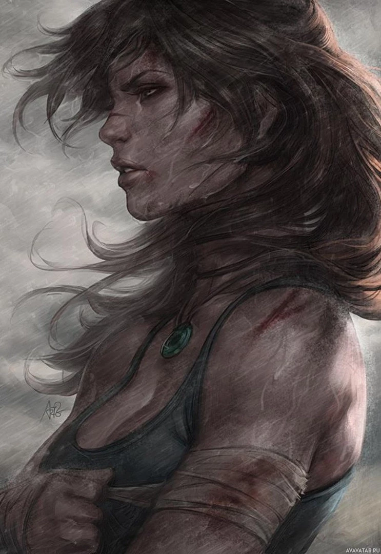 a female character that appears to be inspired by Lara Croft, the protagonist from the Tomb Raider video game series. She is depicted with
