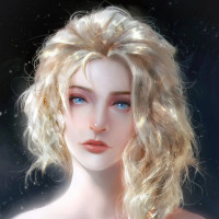 blonde hair styled into braids and a serene expression on her face. Her eyes are closed, and she appears to be in