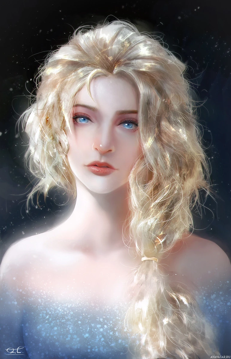 a portrait of Elsa, a character from the animated film "Frozen." She is depicted with
