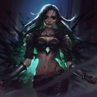 a dynamic feel, with splashes of what could be interpreted as blood or energy, suggesting action or power. Katarina is known for being a fighter class