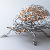 The image features a 3D rendering of an insect that resembles an ant. It's created using wireframe or mesh modeling techniques, where the structure is represented as