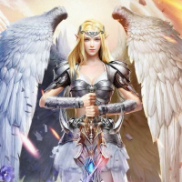 The image shows a fantasy-themed character. She appears to be an angel or