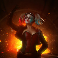 cosplay portrayal emphasizes the bold and often villainous nature of the Harley Quinn character.