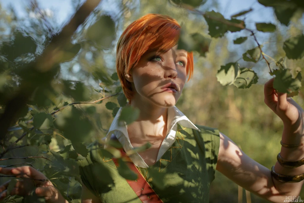 In the image, there is a person cosplaying as Shani from "The Witcher 3: