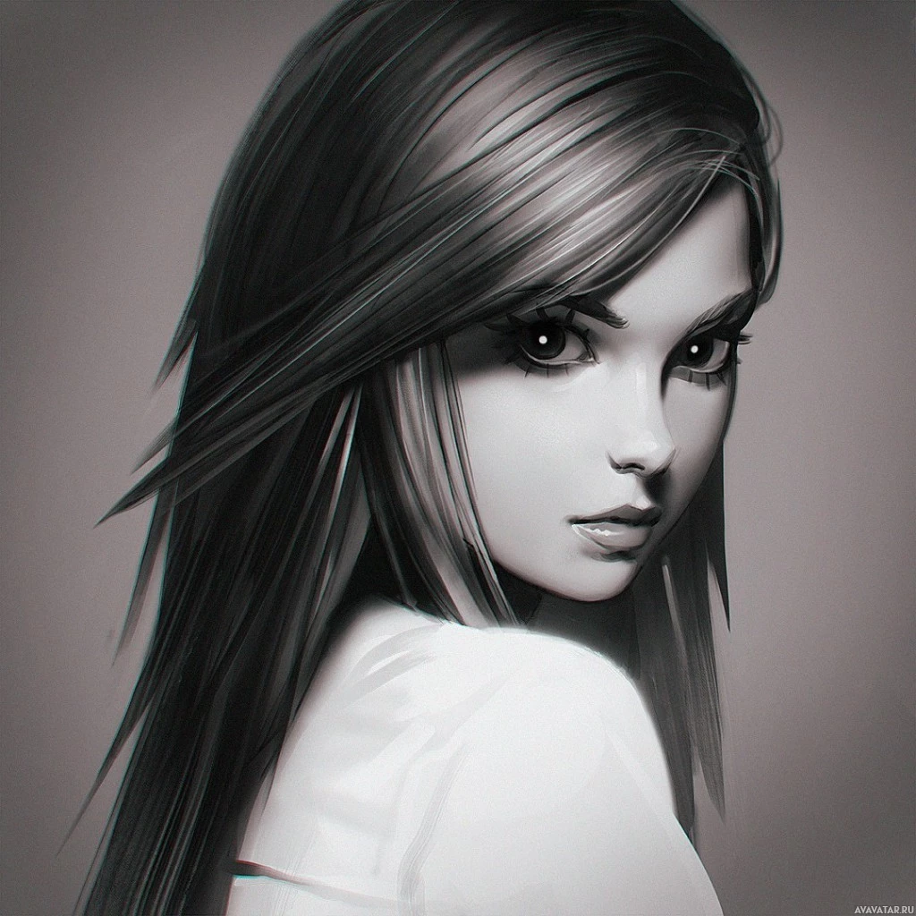 soft shading with darker tones on the top of her head and lighter shades on her face, which gives her a three-dimensional look despite being an illustration.