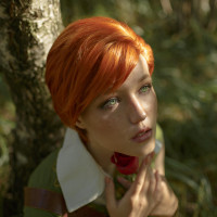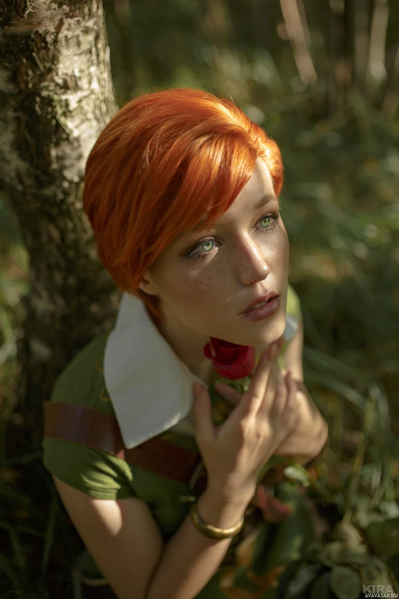 The image features a person dressed in what appears to be a costume inspired by the character Shani from "The Witcher"
