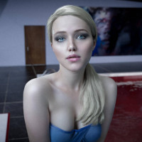 blonde hair, depicted in a way that suggests she is cosplaying. The character appears to be designed to resemble