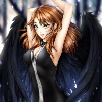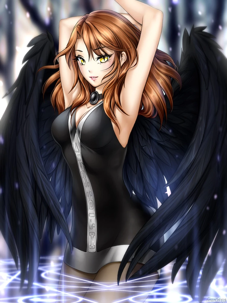 an animated character that appears to be an angelic figure. She has wings and is adorned with what seems to be a costume or armor, which suggests she might be from