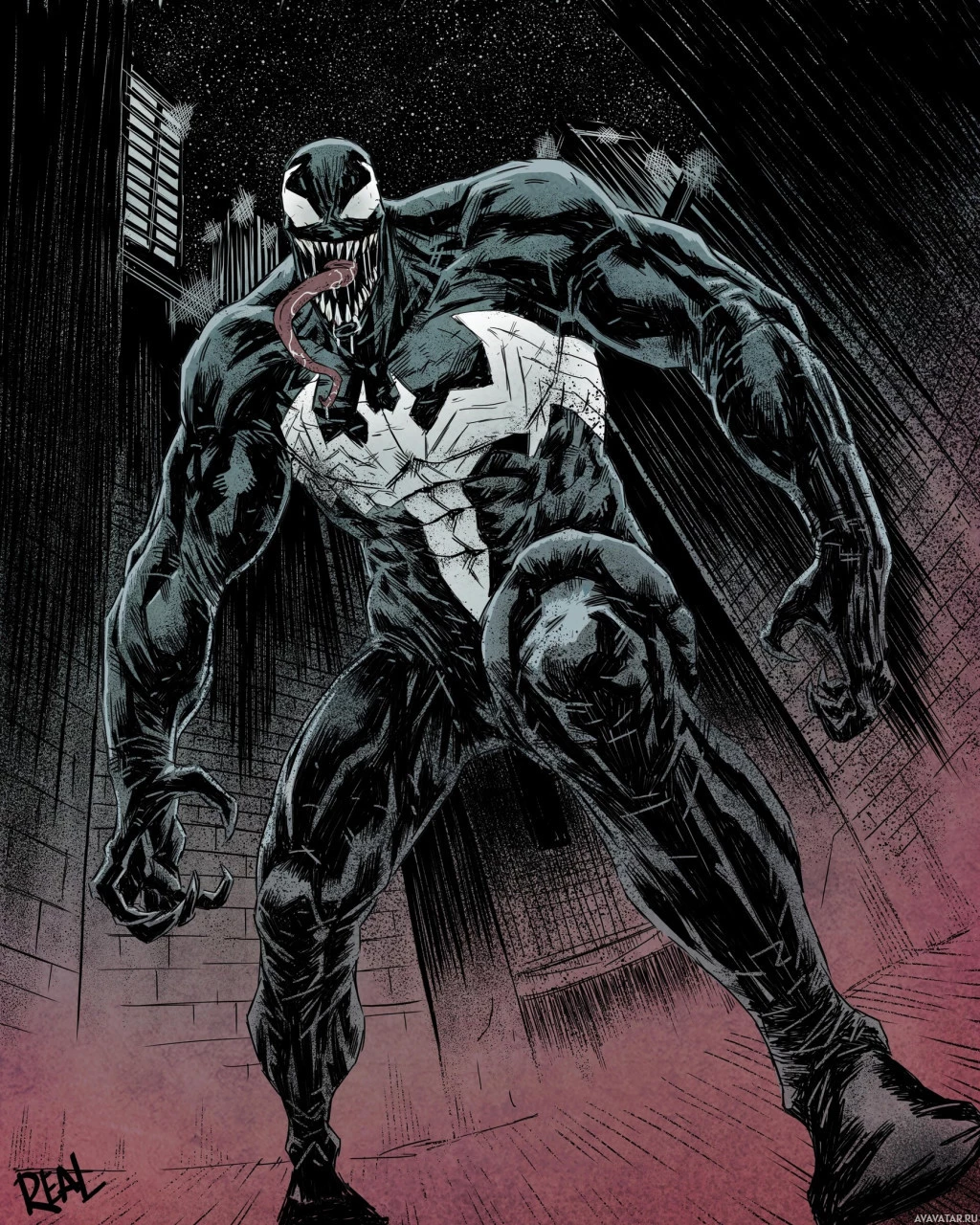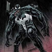 This image features a character known as Venom, depicted in his black