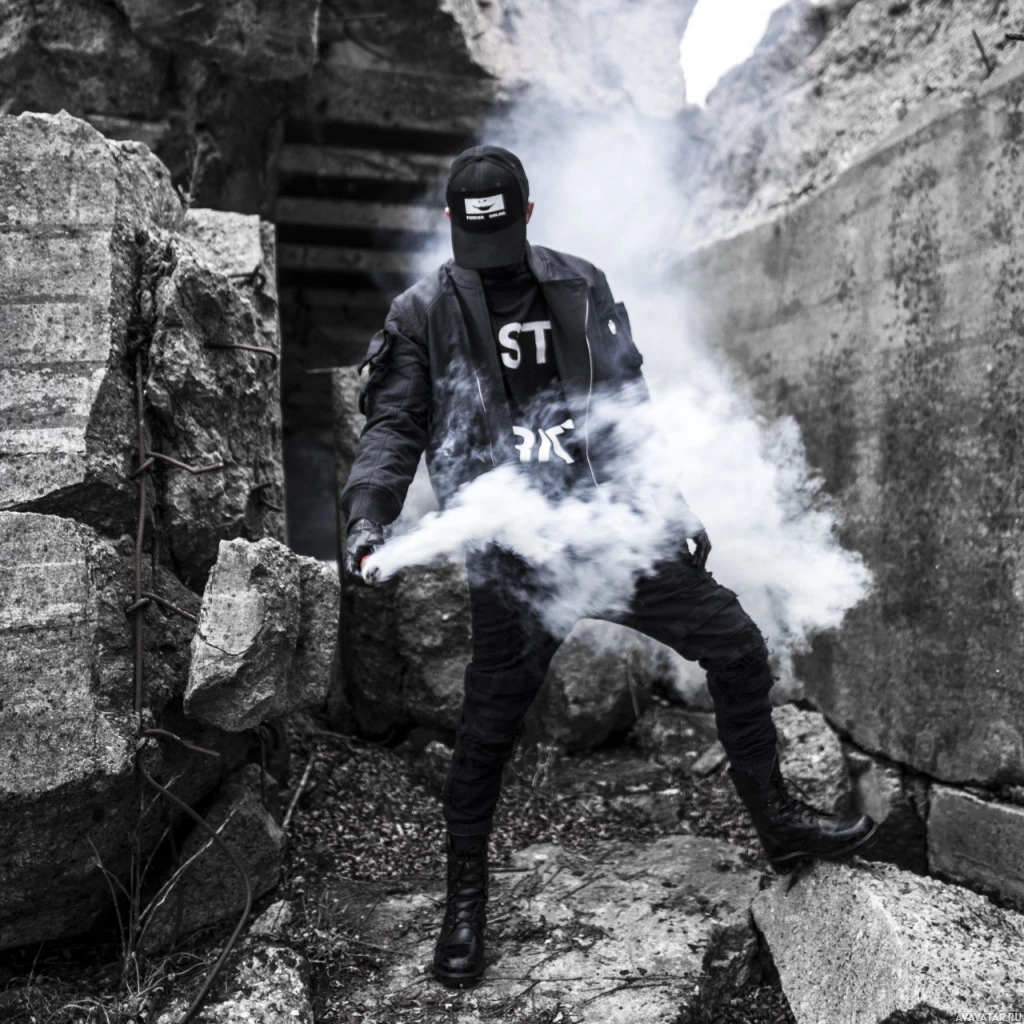 a significant amount of smoke, which appears to be covering the person's lower body as well. The smoke gives