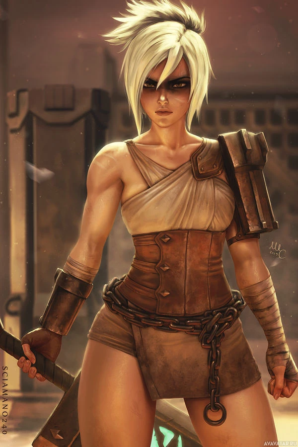 На картинке изображен женский персонаж, вероятно, из видеоигры или мультсериала. Она имеет светлые волосы и изображена в доспехах с мечом в руке. Она установлена на фоне, который предполагает древнюю или фантастическую обстановку.