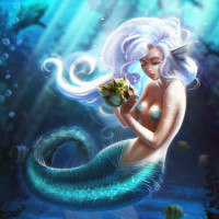 The image shows a fantasy-themed illustration of a mermaid with