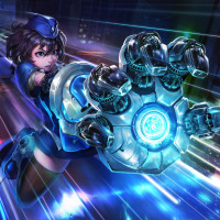 fiction setting. She is holding a robotic arm, which suggests that the scene takes place in a technologically advanced world, possibly within a storyline related to