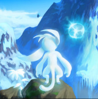 the video game "Ori and the Will of the Wisps". In the foreground, there is a character with white fur, standing on