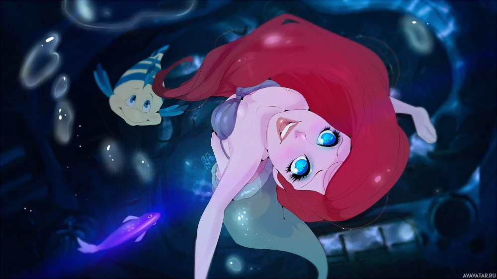 The image shows an animated depiction of a character known as Ariel from the Disney