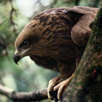 The image features an eagle perched on a branch. It is known for its