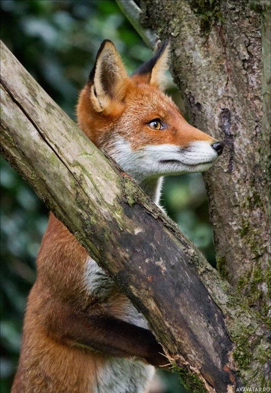 The image shows a fox perched on