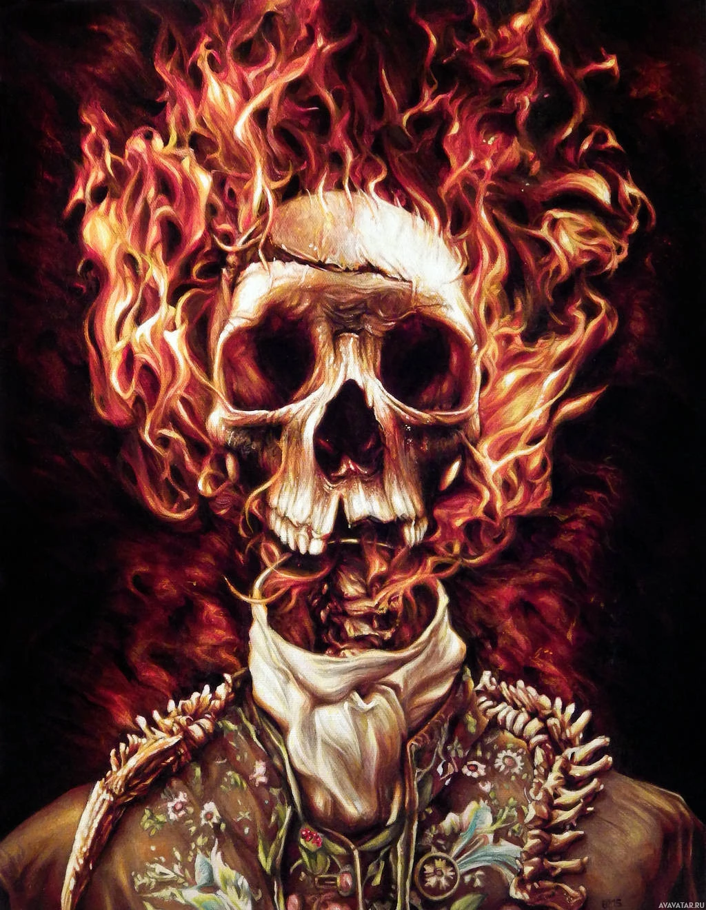 The image features a skull with fire or flames emanating from its mouth. This is likely an artistic representation, possibly symbolizing destruction, chaos, or rebelliousness. The style of the artwork suggests it could be related to heavy metal music, where such imagery is often used for album covers and other