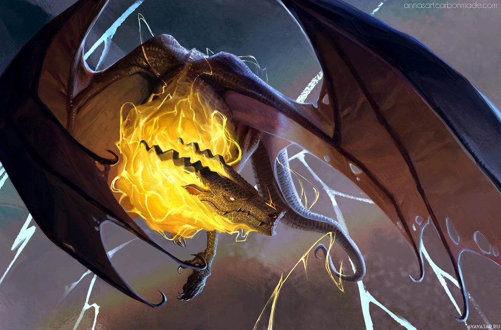 a real dragon, as such creatures do not exist in reality. The dragon is shown with a fiery appearance, which is common in