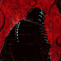 the video game "Dead Space." This is an illustration of a man who appears to be part of the game's narrative, possibly depicting one of the protagonists or antagonists. He is shown in profile facing forward, with a dark and moody atmosphere suggested by the color scheme and artistic style. The character is holding what seems to be a weapon or tool commonly associated with the game, such as an engineering tool or