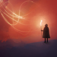 a nighttime scene or a mystical setting. The use of light and shadow gives the image