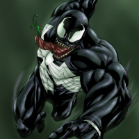 The image depicts a character known as Venom, who is part of the Spider-Man comic
