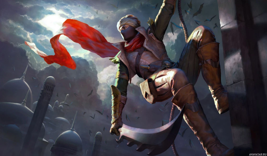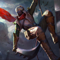 a video game, book series, or similar fictional universe. The character is depicted in dynamic posing, giving