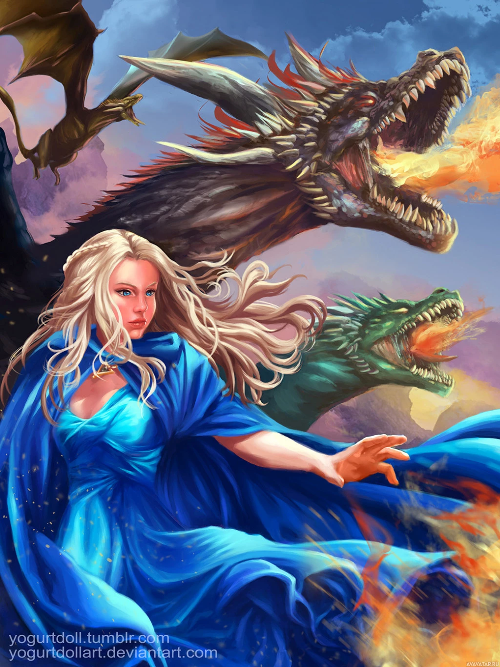 an animated character resembling Daenerys Targaryen from the TV series "Game of Thrones." She is standing in