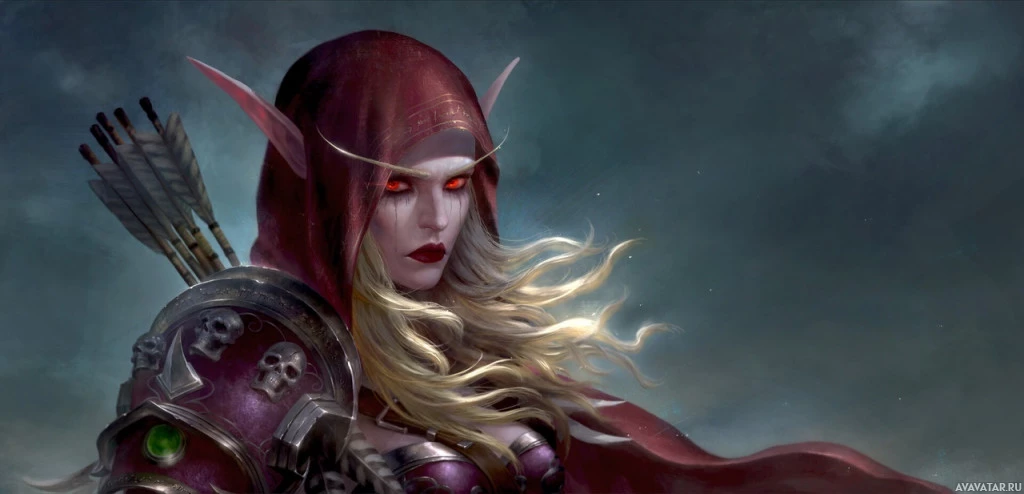 Sylvanas Windrunner, known for her role as a prominent figure in the game's lore. She is portrayed with long