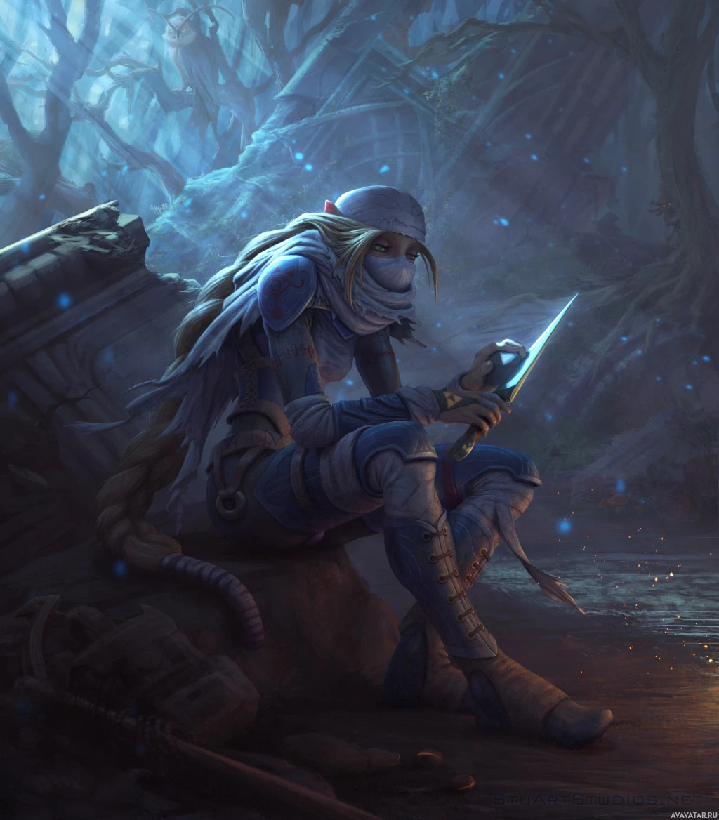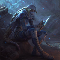 fantasy world. The overall tone of the artwork is moody and atmospheric, evoking a sense of solitude and quiet introspection for the character portrayed.