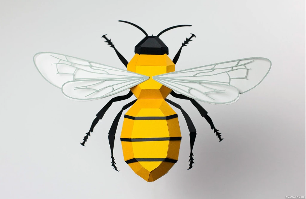 the reflection of light through them, creating an effect similar to actual bee wings. This is a type of origami or paper art that uses folded paper to create three-