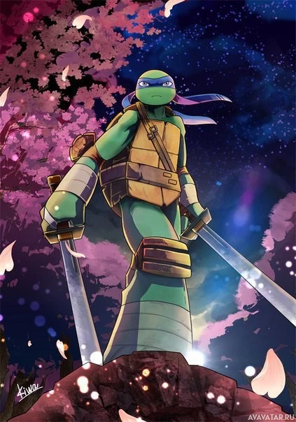 The image features an illustration of a character known as Leonardo, a member of the Teenage Mutant