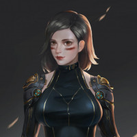 character design is highly detailed, with mechanical components visible in parts of her armor, giving the impression that she might have advanced robotic enhancements or powers.