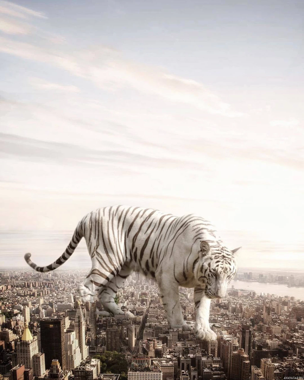 an urban skyline. The city appears to be New