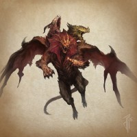 video games, or other forms of media where mythical beings are central themes. The creature is drawn in a realistic style with attention to detail that gives it an intimidating and powerful appearance.