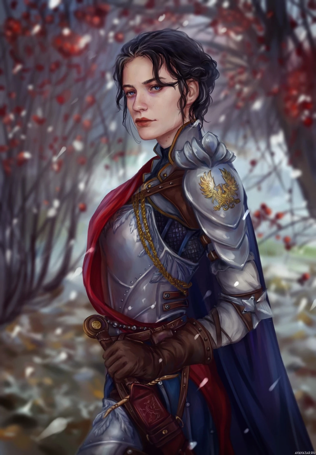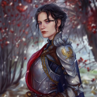 The image depicts a character designed in an illustration style. The character is wearing medieval-style armor with elements that suggest