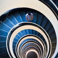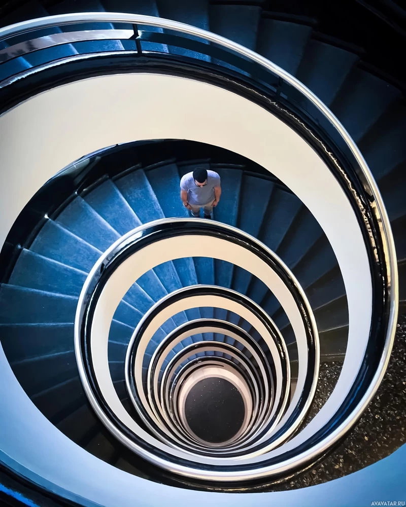 a spiral staircase. This architectural element is also known as a helical ramp or a spiral stair, which typically provides access to upper levels within buildings without the need for landings or intermediate floors.