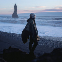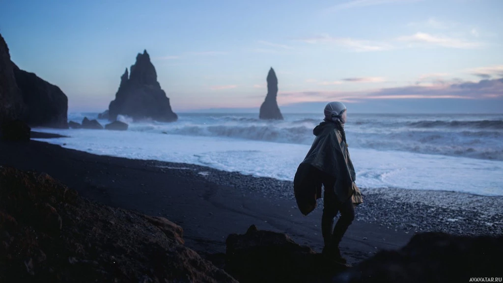 natural beauty, possibly a location such as Skaill Beach in Orkney, Scotland, which is famous for its dramatic sea stacks and tidal pools. The person appears to be looking out at the ocean, perhaps reflecting on
