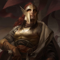 a fantasy knight. This individual is wearing armor and a helmet with what seems to be a griffin-like design, which suggests they may be from a mythical or