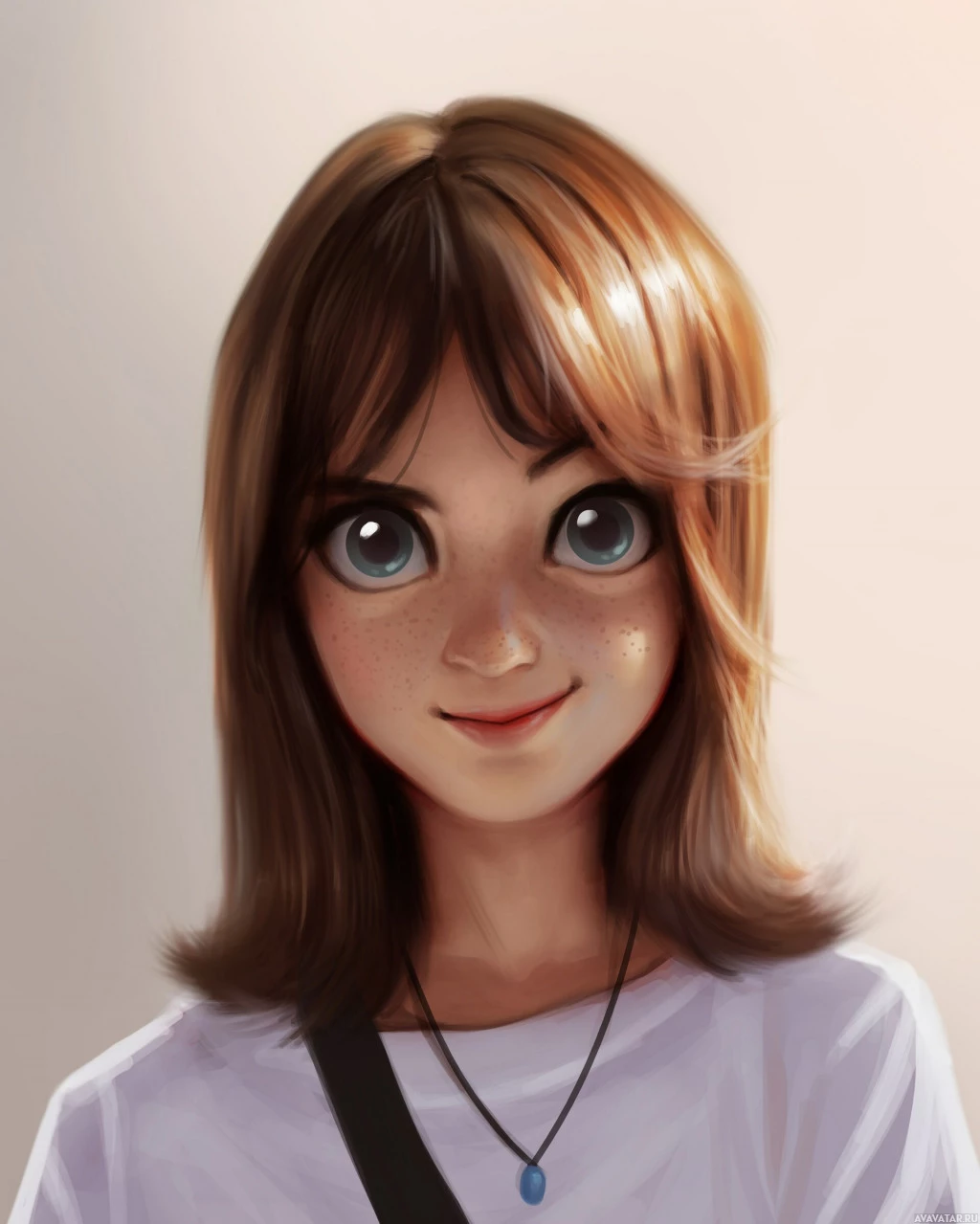The image shows a stylized illustration of a girl with red-haired. She has a cute appearance, often associated with "kawaii" or "chibi" art styles, which are popular in anime and manga culture for their exaggerated features such as