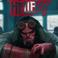 the character Hellboy. He is depicted with