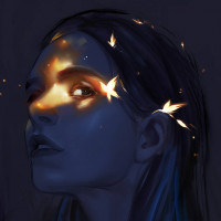small sparkles that resemble falling stars, adding an ethereal or dreamlike quality to the image. The artwork conveys