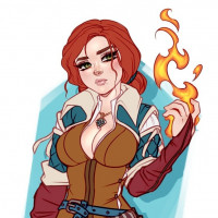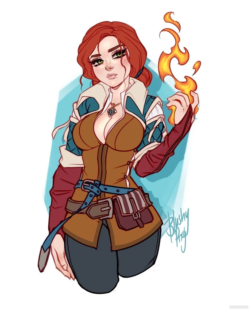 The image shows an illustration of a character that resembles Triss Merigold from "The Witcher"