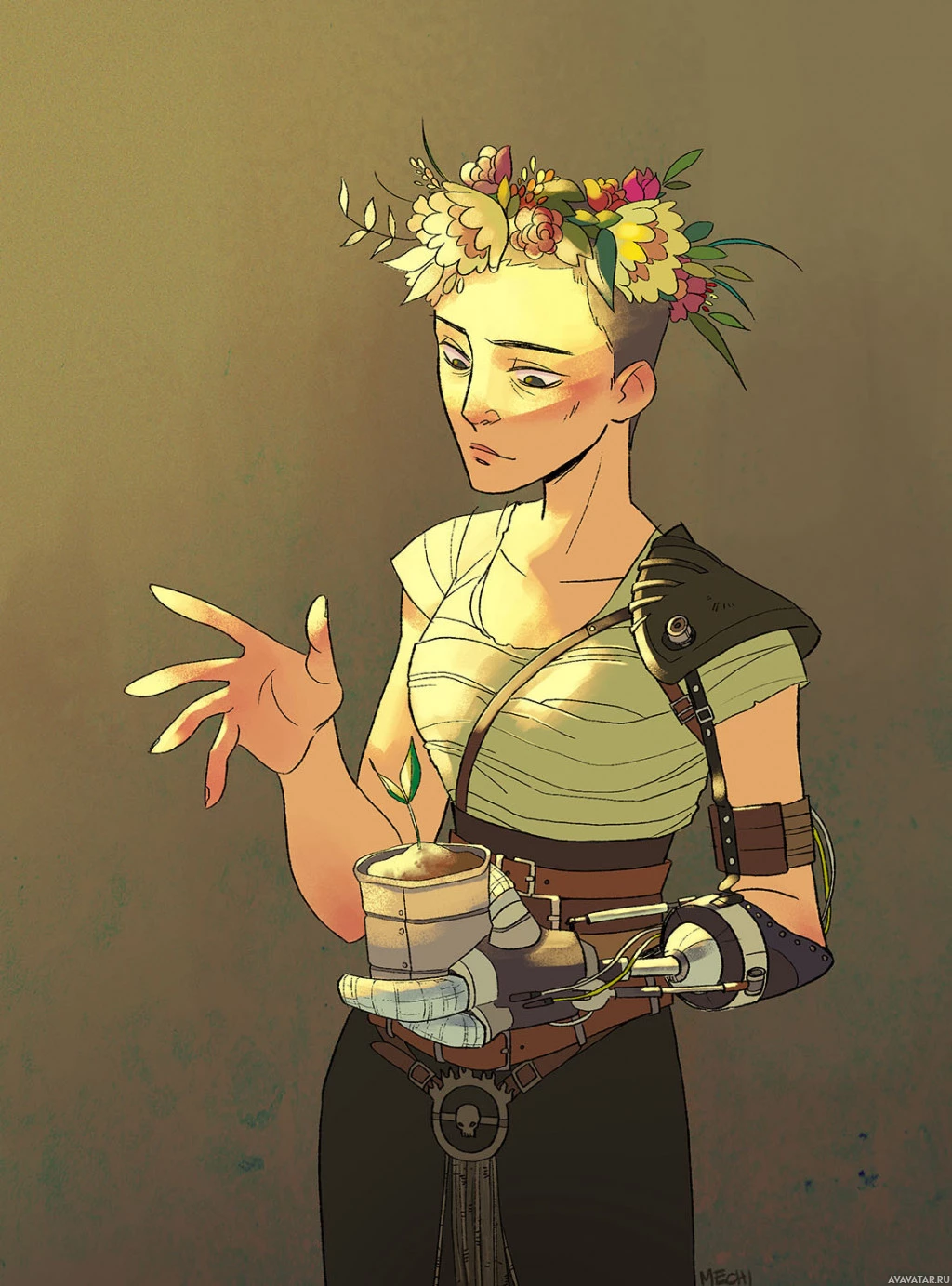 The image depicts a character who appears to be an anthropomorphic figure, possibly resembling Furiosa from the movie "
