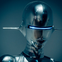 The image shows a humanoid robot. It has a metallic body with a head that appears to be designed for human interaction, possibly with sensors or cameras built into the structure. The color scheme is primarily silver and black, and there are blue lights on what could be interpreted as eyes or other functional areas. The design suggests a level of sophistication in artificial intelligence or robotics.