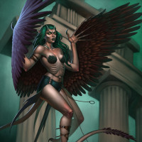 body of a human, sometimes described as beautiful, seductive women. In this image, the harpy is shown with large